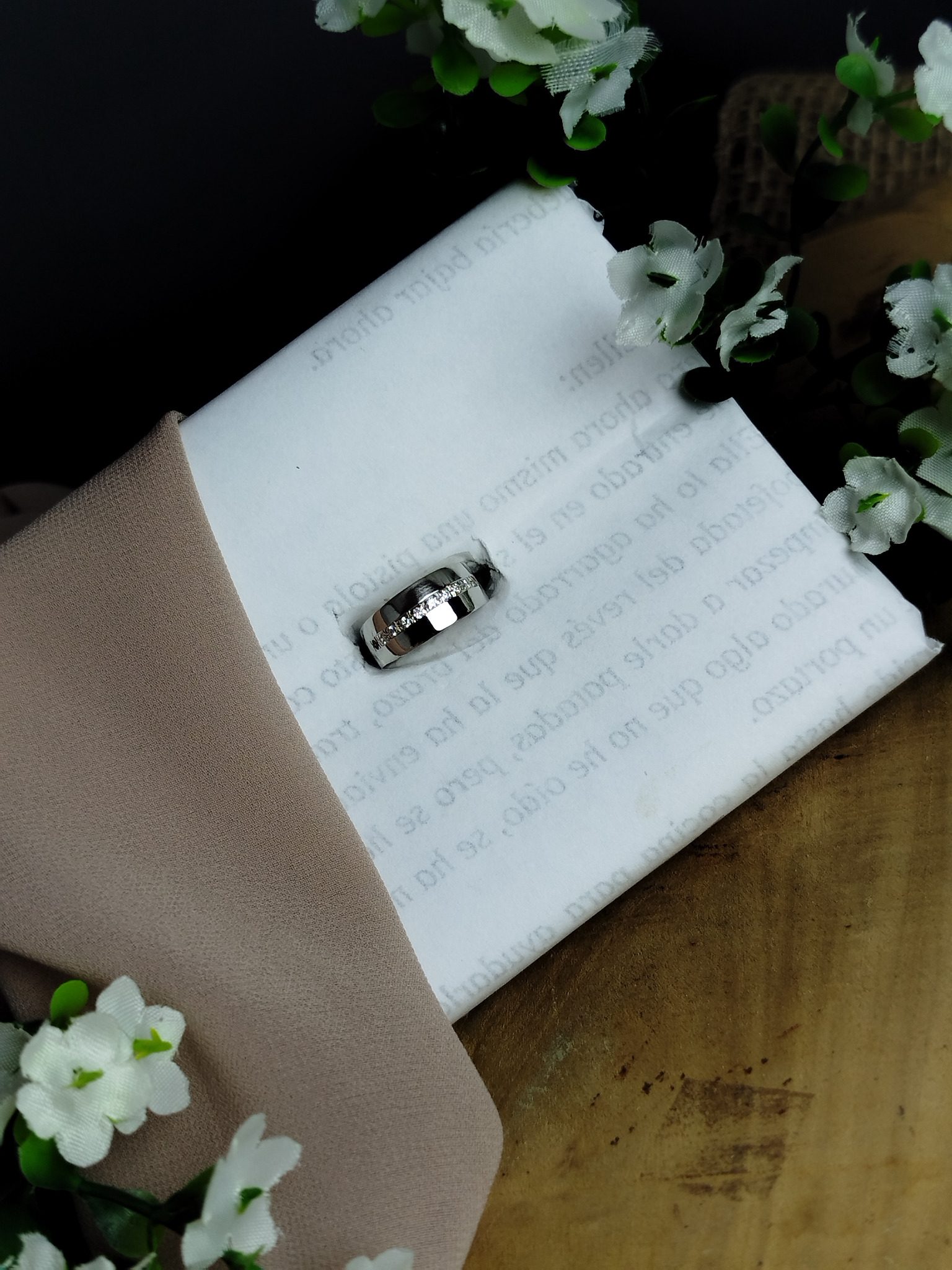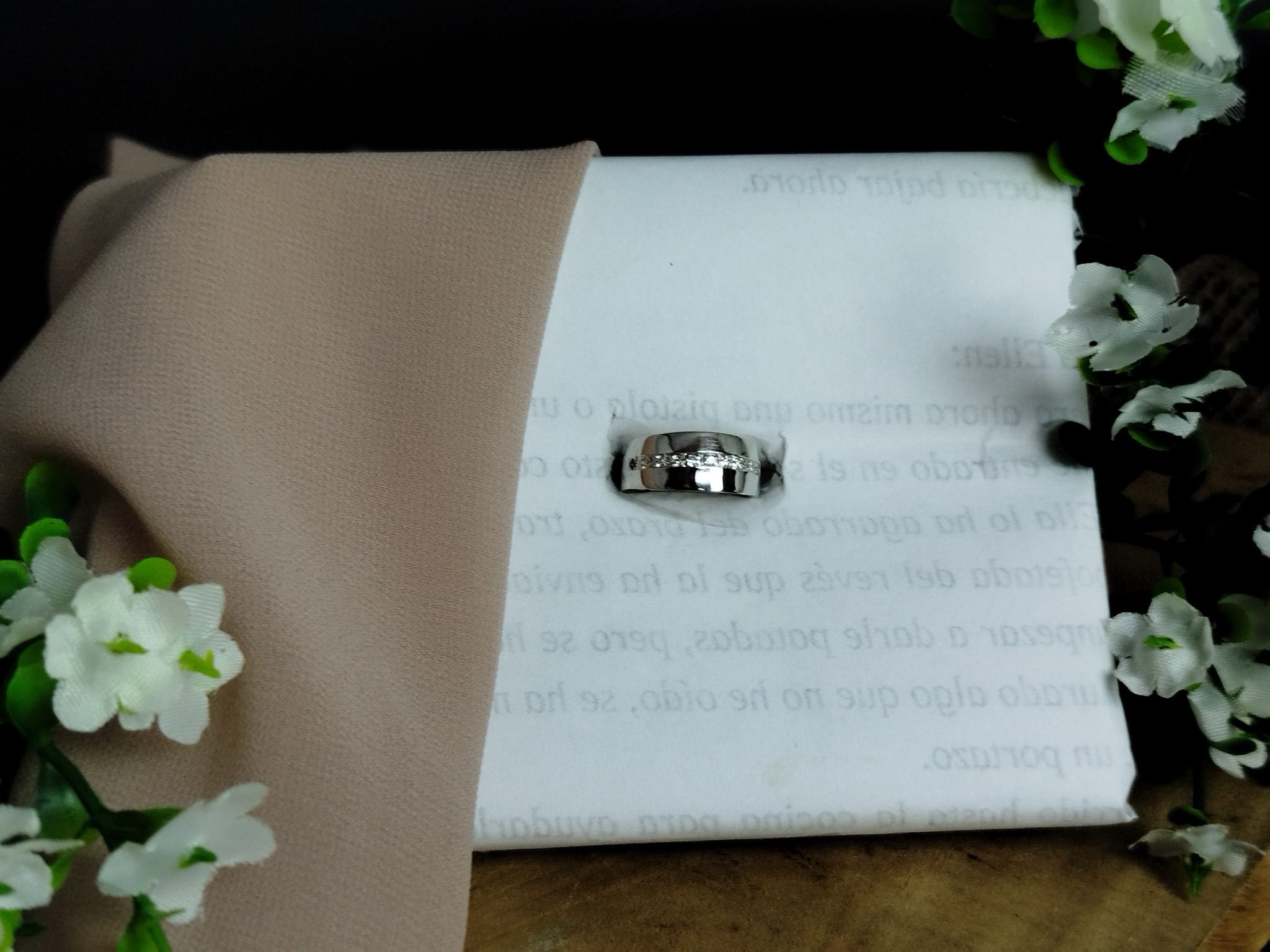 Elegante anillo elaborado en platino 900, con un peso total de 3.15 gramos y talla 5.