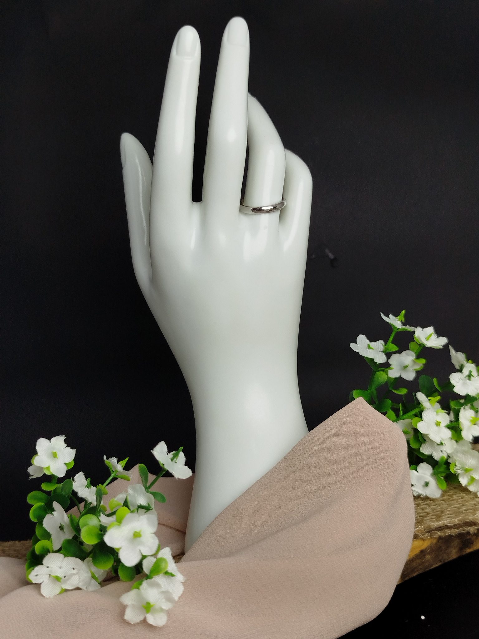 Su diseño minimalista resalta la pureza y brillo natural del platino, destacando por su acabado pulido espejo que refleja la luz con elegancia y sobriedad.