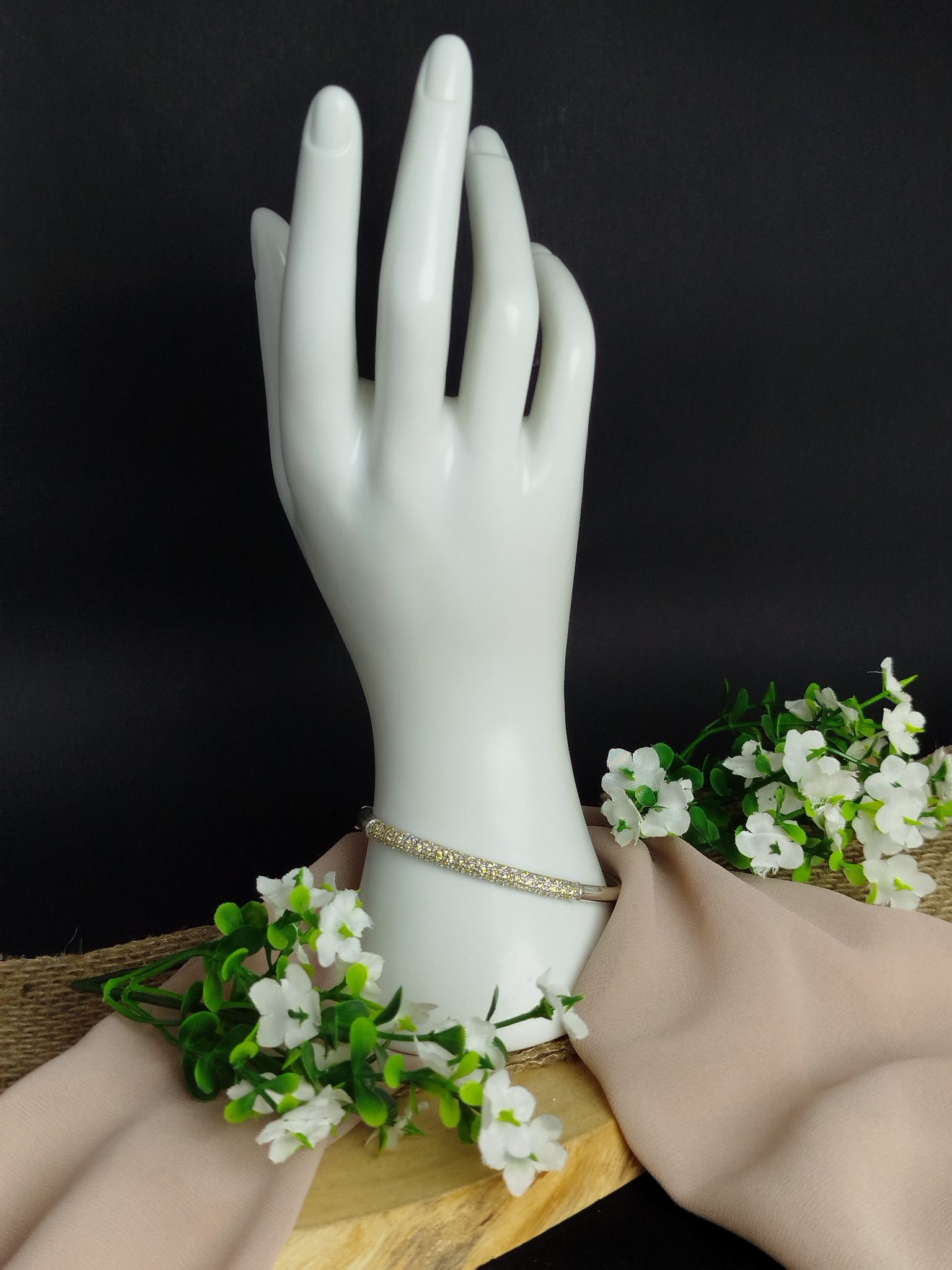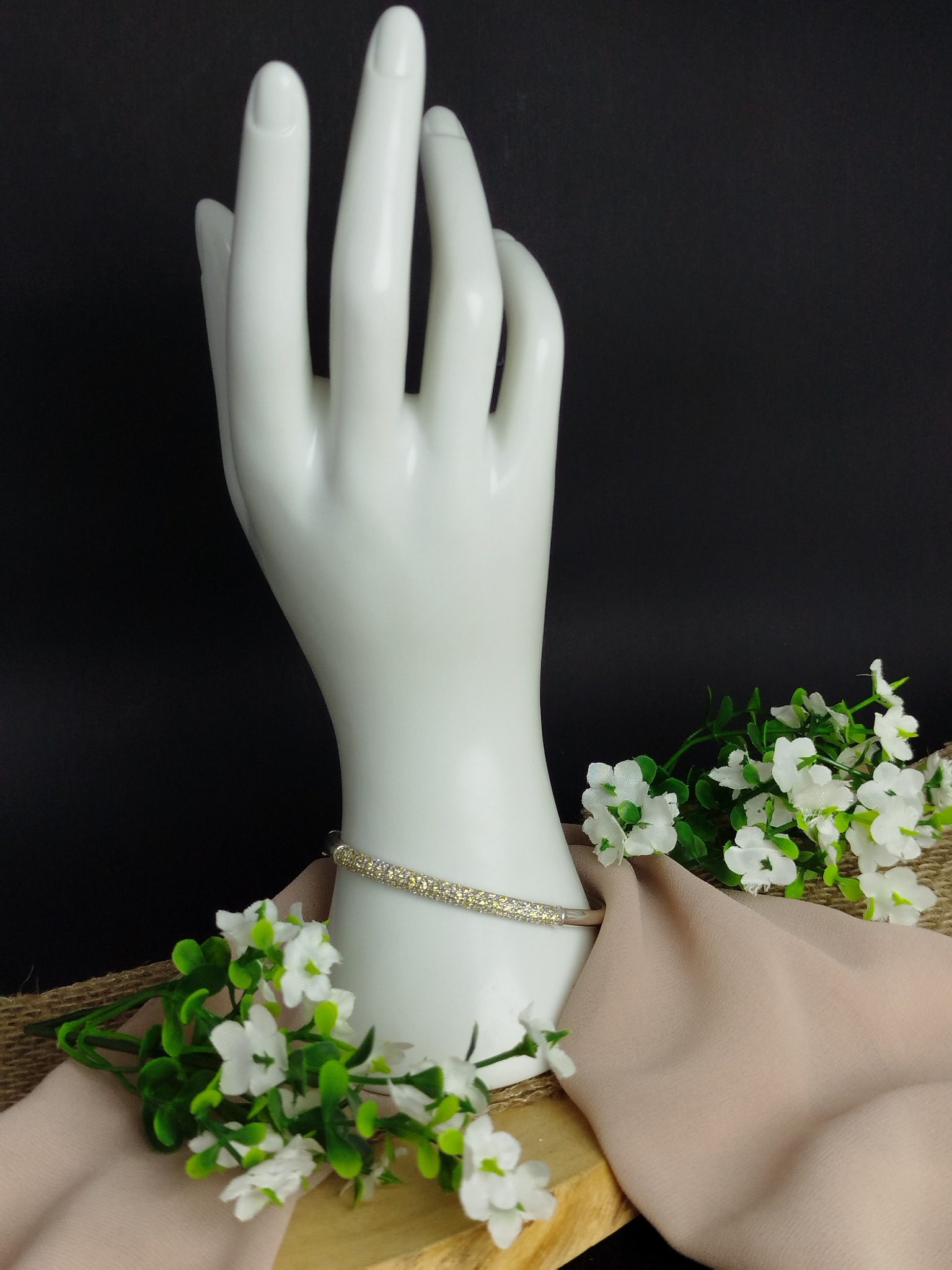 Su estructura presenta un diseño refinado de alta precisión, engastado con 60 circones blancos perfectamente alineados que otorgan un brillo uniforme y elegante.